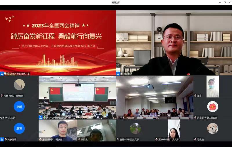 环博221团支部将推优入党工作与学习党的二十大精神专题组织生活会相结合,线上聆听第十四届全国人大代表逄子剑的全国两会精神报告——《踔厉奋发新征程,勇毅前行向复兴》。廖梓童表示:“‘事不畏难、行不避艰’,逄子剑等69名脱贫攻坚驻村干部扎根巴格阿瓦提乡一线,给基层群众带来了生活上翻天覆地的变化,泥巴房变成了安居抗震房,泥土路变成了柏油路,群众齐齐奔小康,这离不开党中央的坚强领导,也离不开高层次人才。强国建设、民族复兴的接力棒,历史性地落在我们这一代人身上。接好棒,我们就是国家未来的希望。”同时,环研二、环研四、环研五、环研六、环博211、环硕211、环博212、环硕221党团支部共131名研究生线上参加了本次两会精神报告学习。