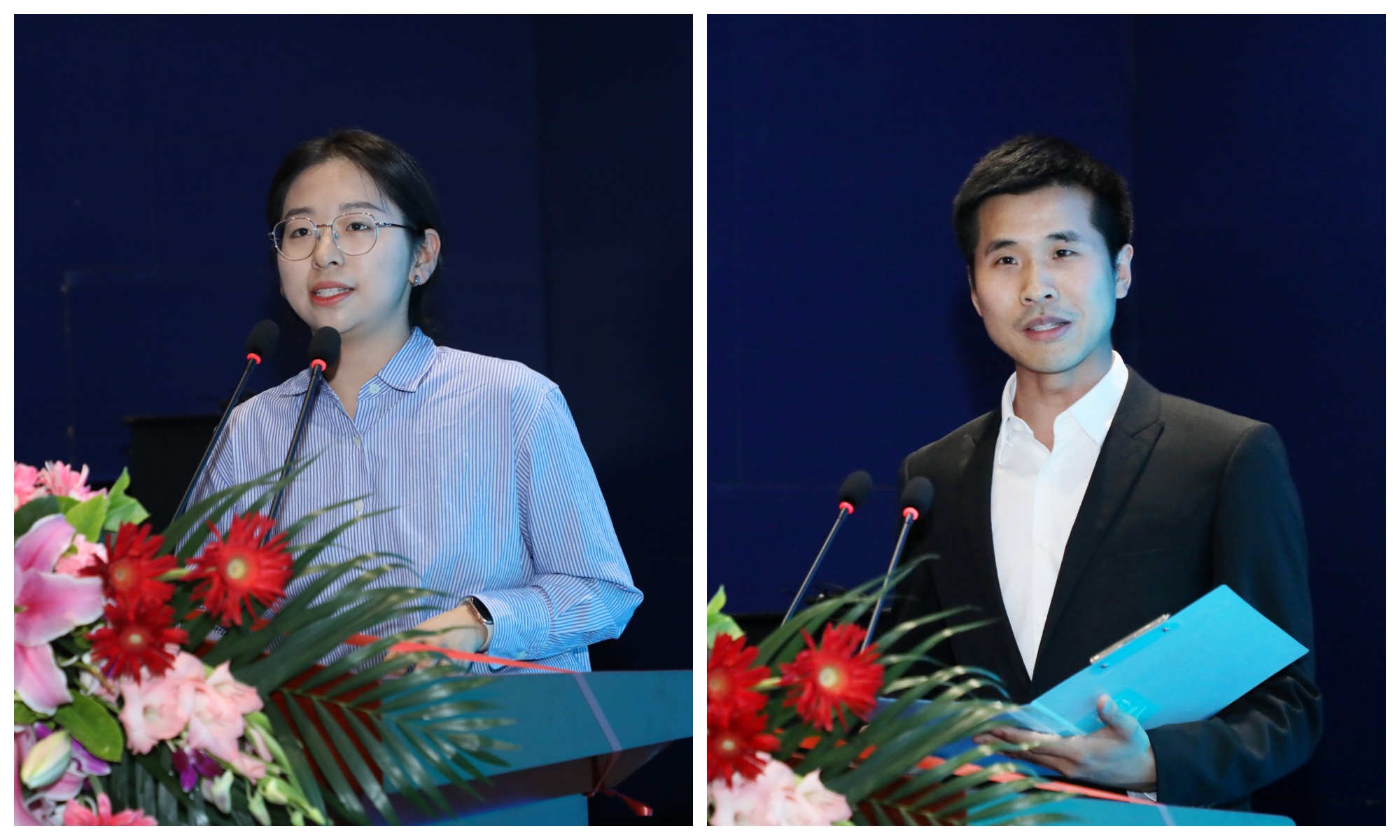 获奖员工代表王艺轩(左)、郑凯旋(右)发言