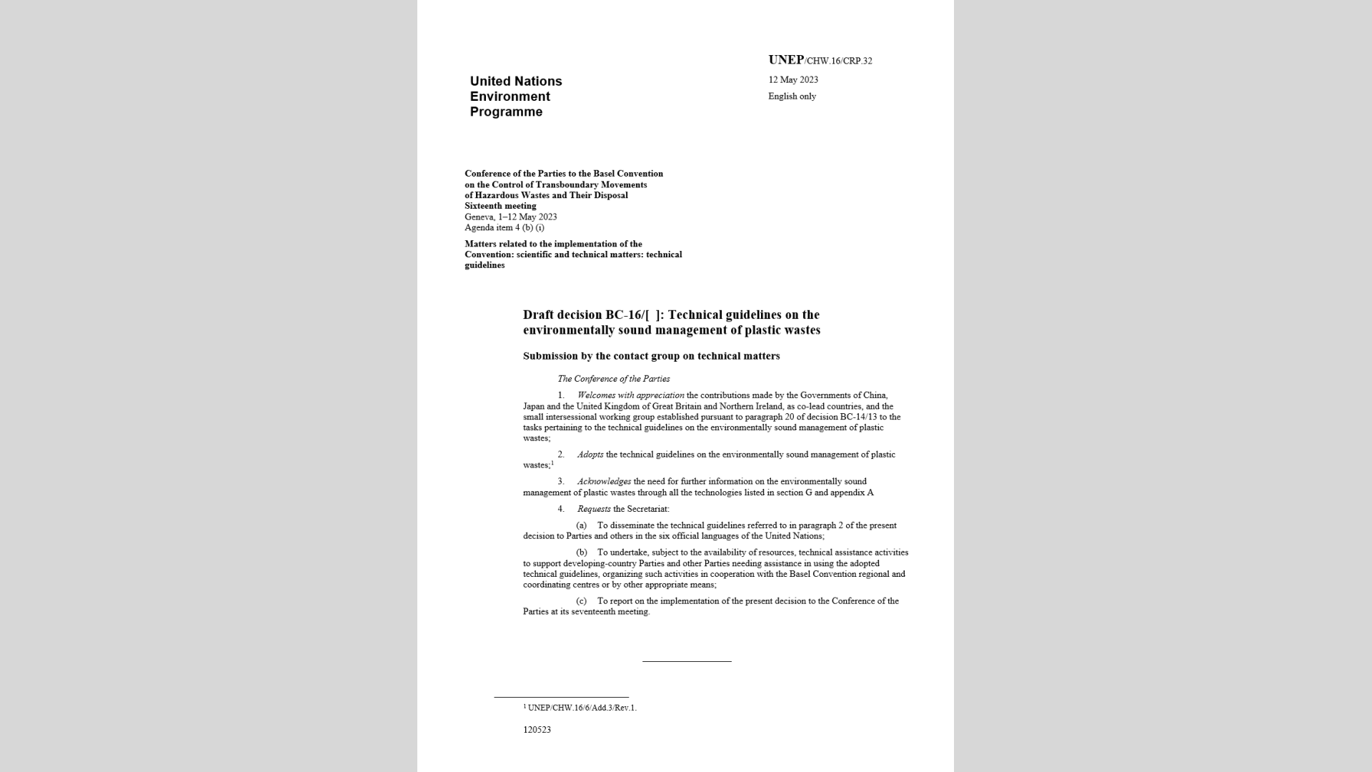 william威廉中文官网2023年5月15日电(通讯员 赵娜娜)5月1日-12日,巴塞尔公约、鹿特丹公约、斯德哥尔摩公约2023年缔约方大会在瑞士日内瓦召开,超过160个国家的缔约方和观察员约2000名代表参会。william威廉中文官网助理研究员谭全银,巴塞尔公约亚太区域中心助理主任赵娜娜、科研助理张玉娇作为中国代表团成员参会。经过11天漫长艰苦的谈判,会议最终审议通过了《塑料废物环境无害化管理技术导则》(Technical guidelines on the environmentally sound management of plastic wastes)(以下简称“技术导则”)。