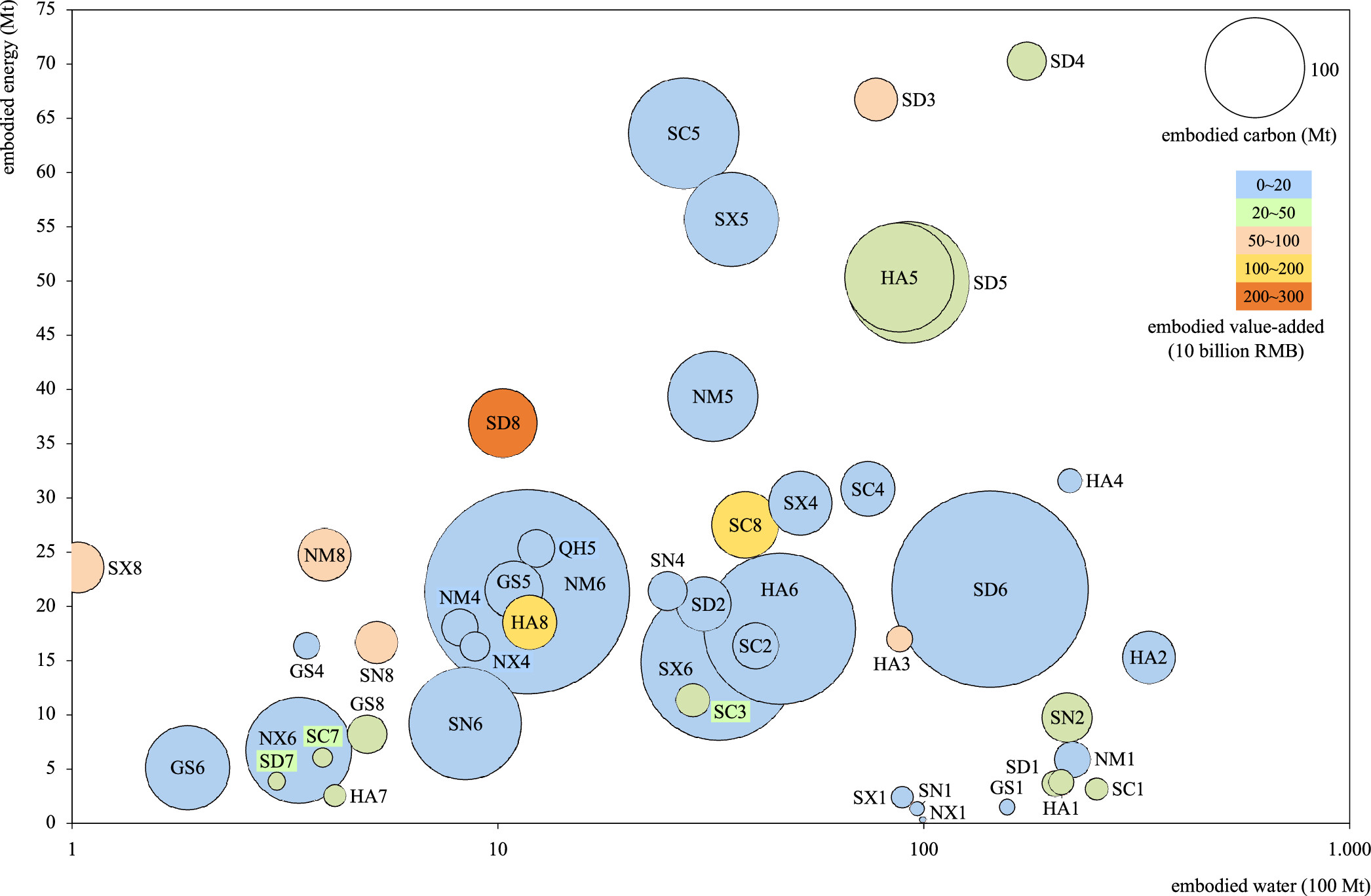 图4. 黄河流域九省8大行业间隐含水-能-碳-增加值关联