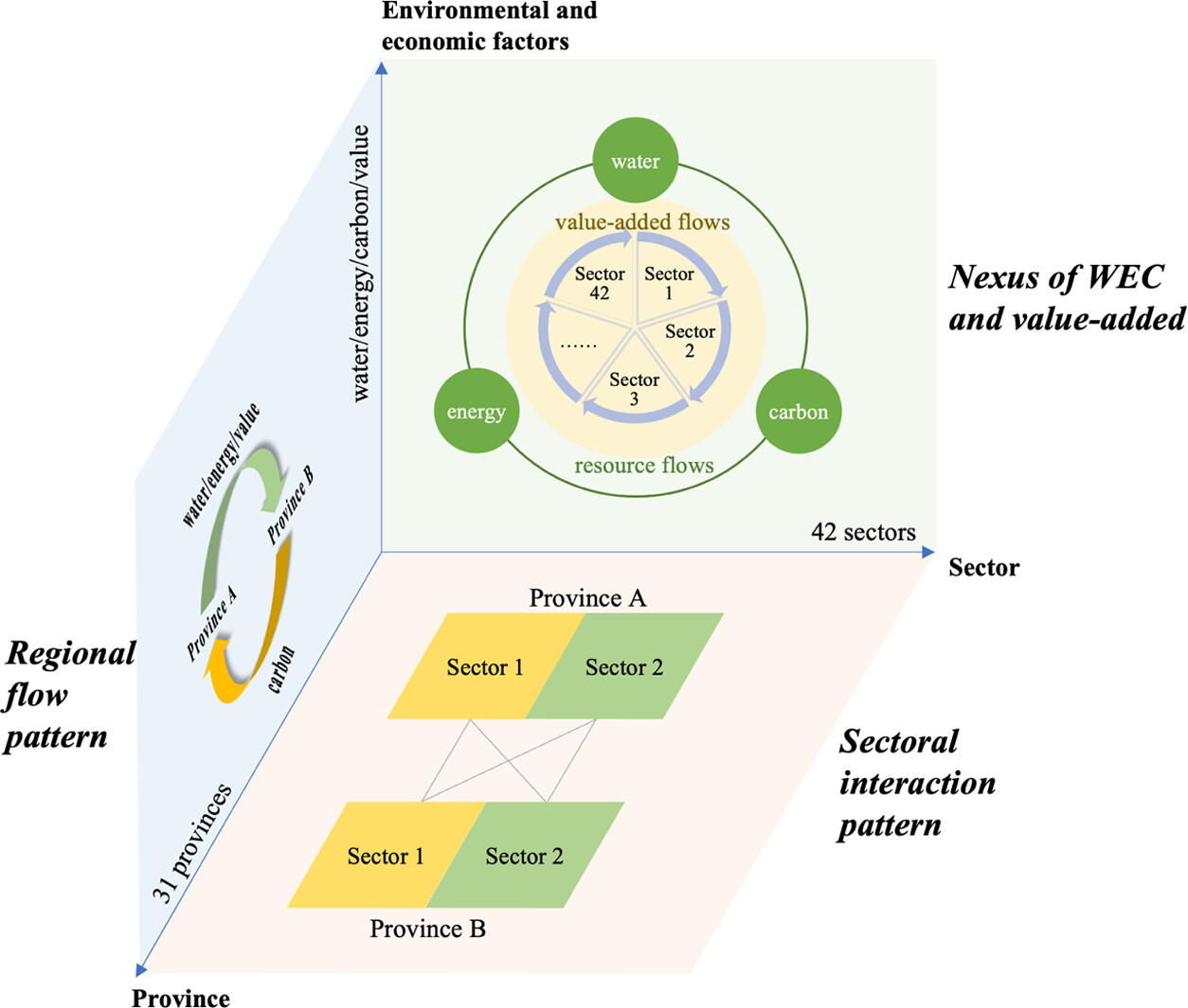 图1. 隐含水-能源-碳-价值流的关联分析框架