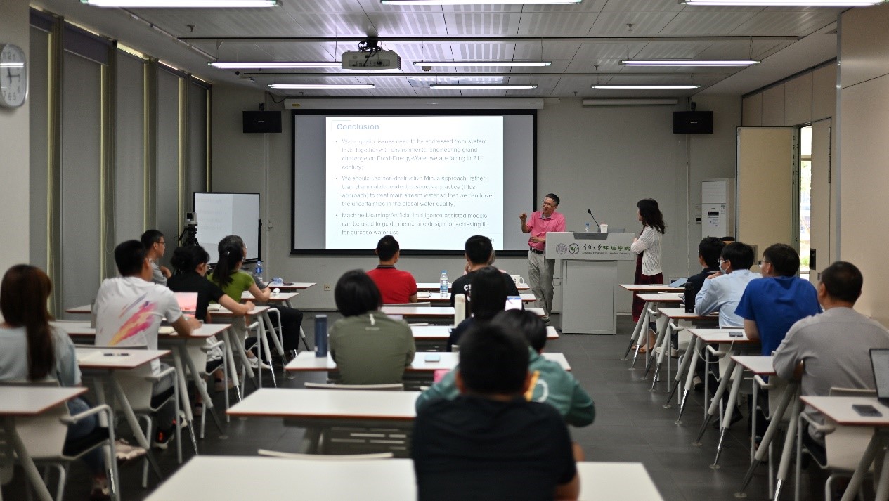 报告结束后,陈勇生与参会师生就机器学习数据来源及算法稳定性、低通量膜过滤的工程潜力等问题进行了更深入的交流。