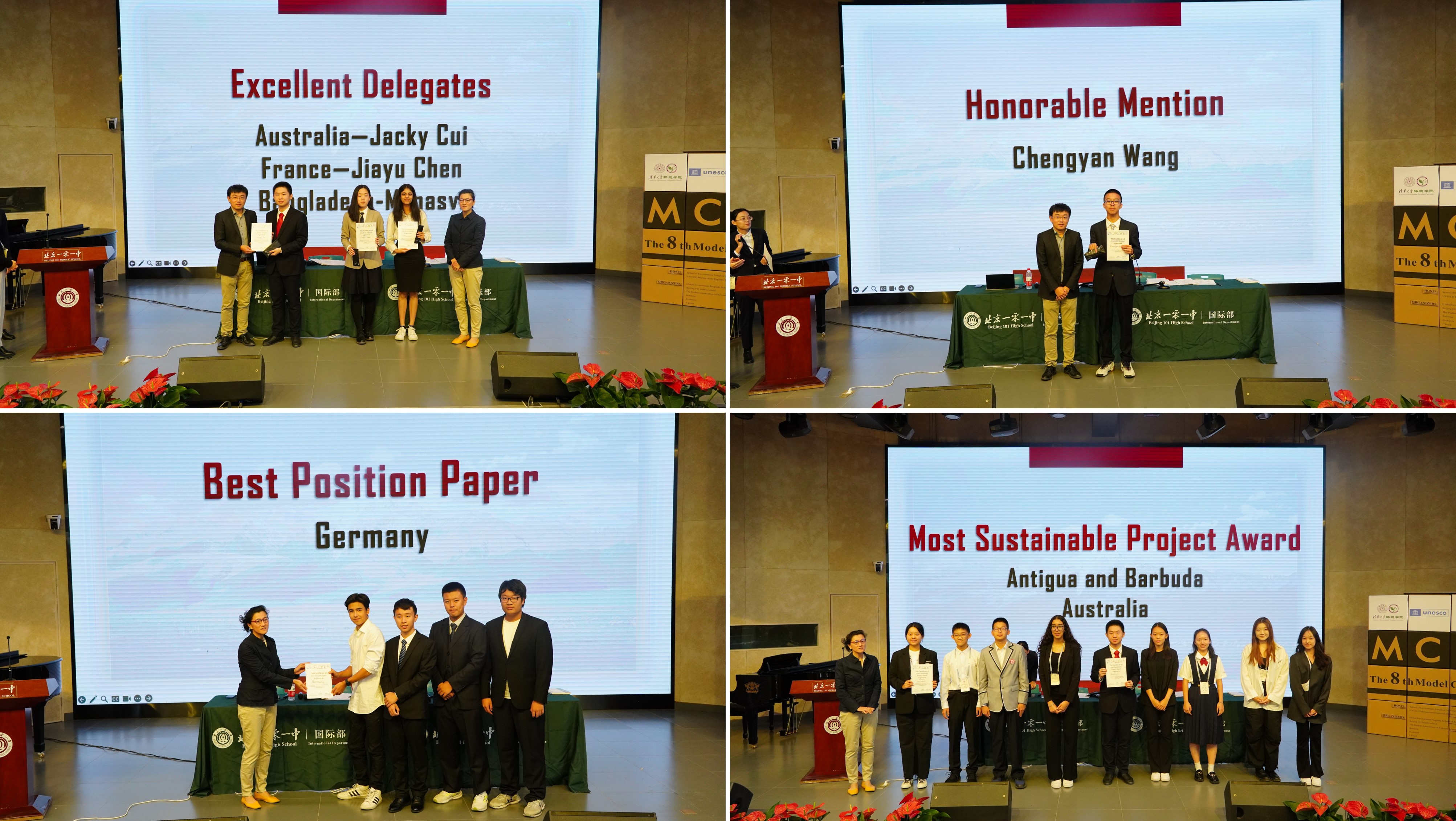 评委们对代表们的表现表示赞赏,最终评选出主分会场共计2名最佳代表奖、3名杰出代表奖,3名最佳表达奖、2名最佳风采奖,对于在表现突出的国家集团代表,也授予了共计6名最佳立场文件奖和5名最佳可持续发展奖团队奖项,以此奖励他们在会议期间的高度参与和出色表现。