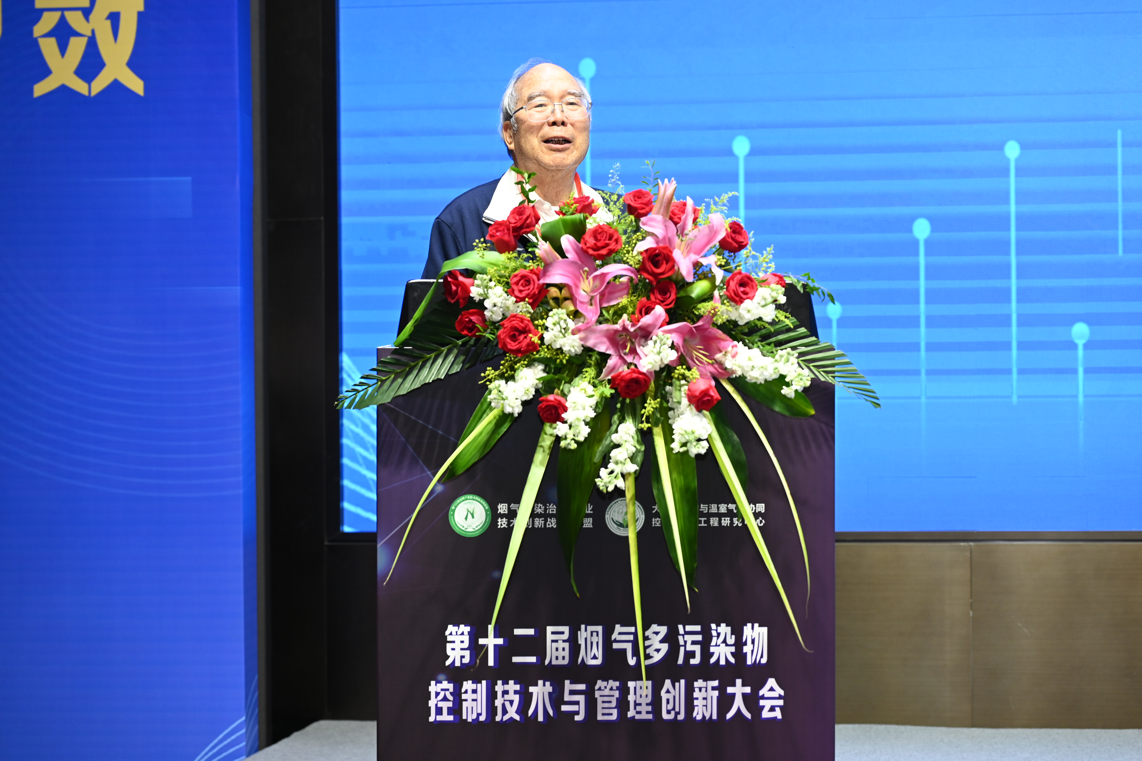 李俊华向与会领导、专家简要介绍了国家工程研究中心的建设发展历程、科研成果和未来规划等情况,随后针对“烟气减污降碳技术研发与挑战”作大会报告。