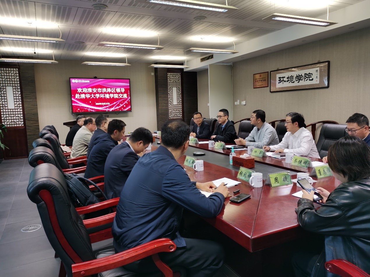 徐明代表公司对张灏一行表示欢迎,并介绍了公司整体情况。张灏简要讲述了洪泽区环境治理情况,提出了洪泽区当前在水环境治理方面所面临的挑战及技术需求。梁鹏从污废水净化与回用、污废水/物能源与资源回收、水质监测与预警、面源污染削减与管网优化四个方向介绍了水环境保护教研所近年来研发的相关新技术。刘锐平重点介绍了给水排水教研所在饮用水安全保障技术、供水管网漏损检测与控制等方面的研究成果,并回顾了基于国家重点研发计划在洪泽区开展的相关研究工作。