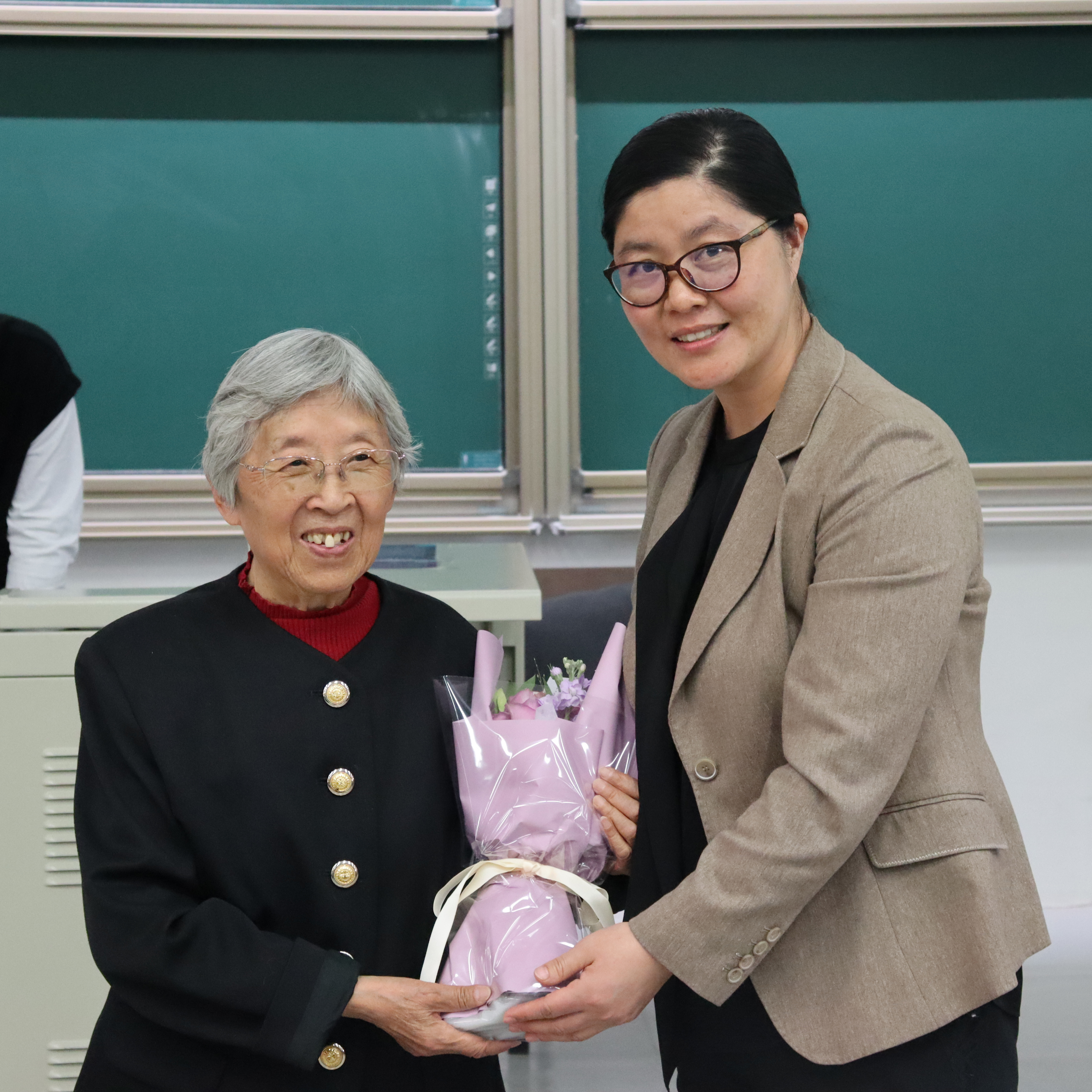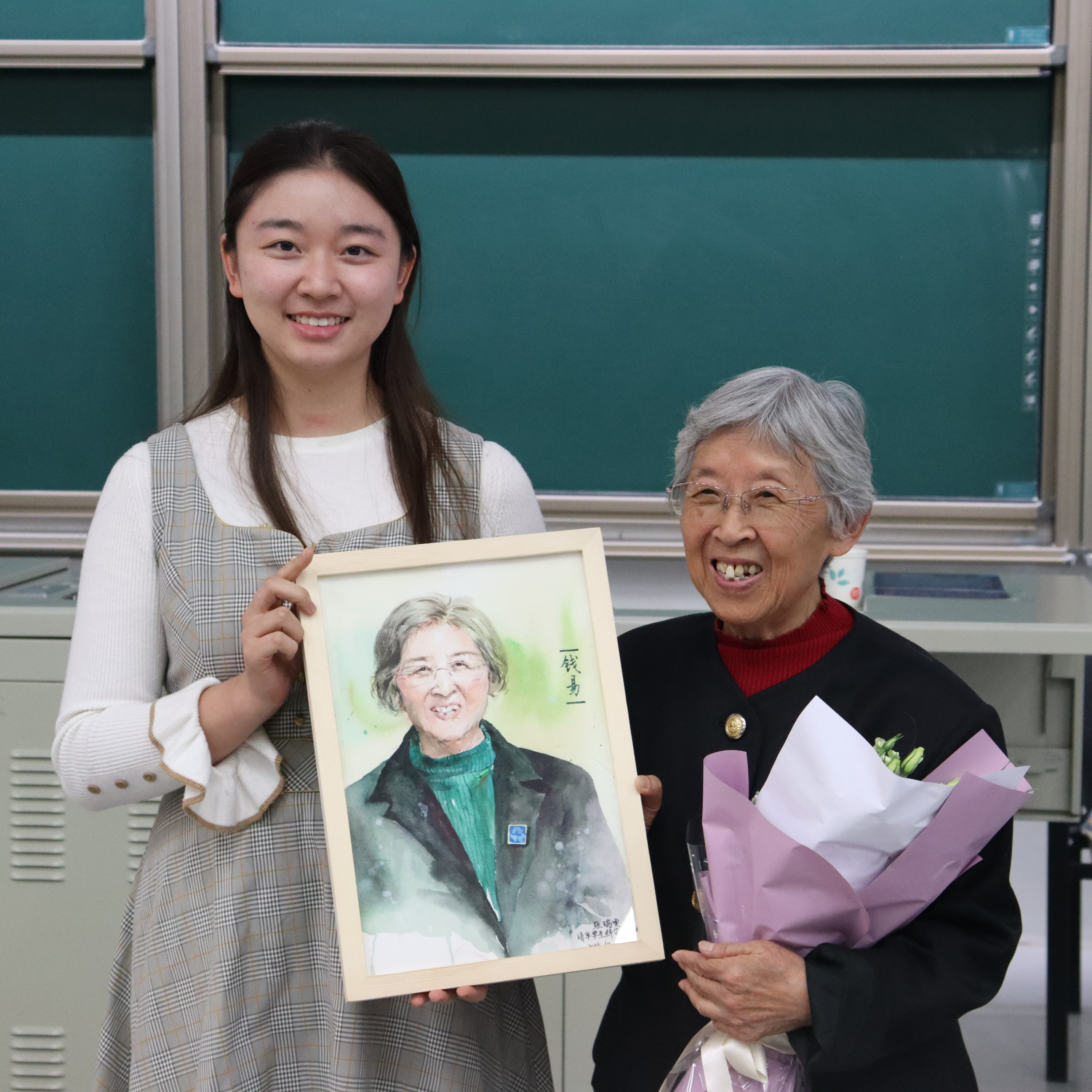 袁丽丽老师、张瑞雯同学向钱易先生赠送纪念礼物