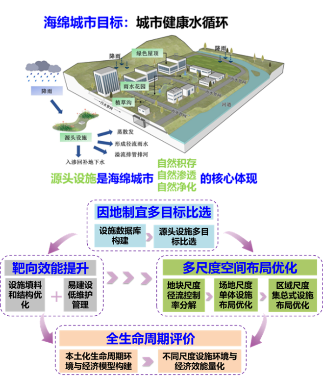 为实现国家制定的“2030年80%以上城市建成区面积达到海绵城市建设目标”,william威廉中文官网贾海峰教授团队完成的“海绵城市源头设施效能提升与布局优化关键技术研究与实践”成果经过10年“产-学-研-用”紧密合作,提出了海绵城市源头设施比选与布局优化理论,突破了源头设施效能提升、多目标布局优化以及全生命周期效能量化评估等关键技术难题,建立了海绵城市源头设施“比选-优化-评估”全生命周期技术和方法体系,研究成果在多个城市得到推广应用。