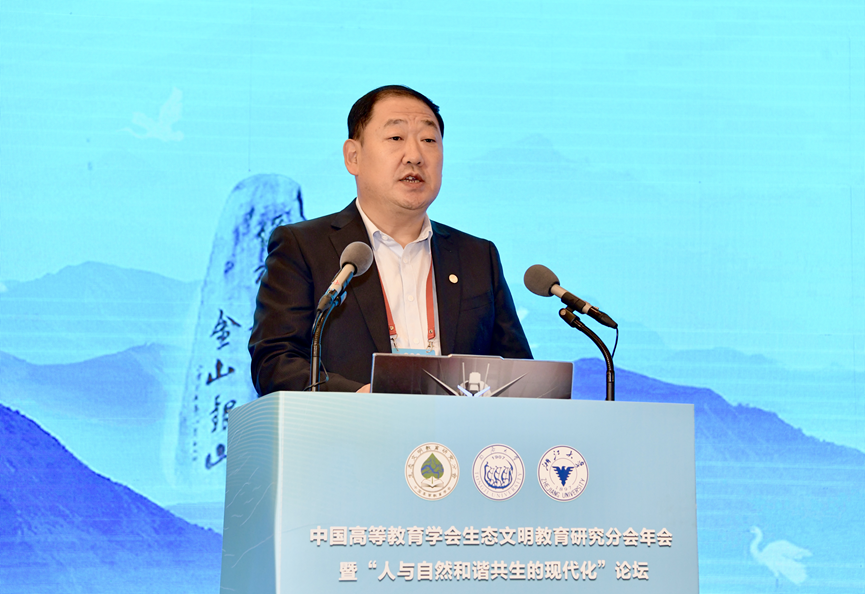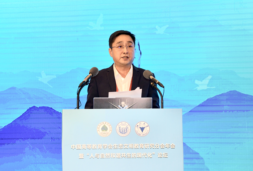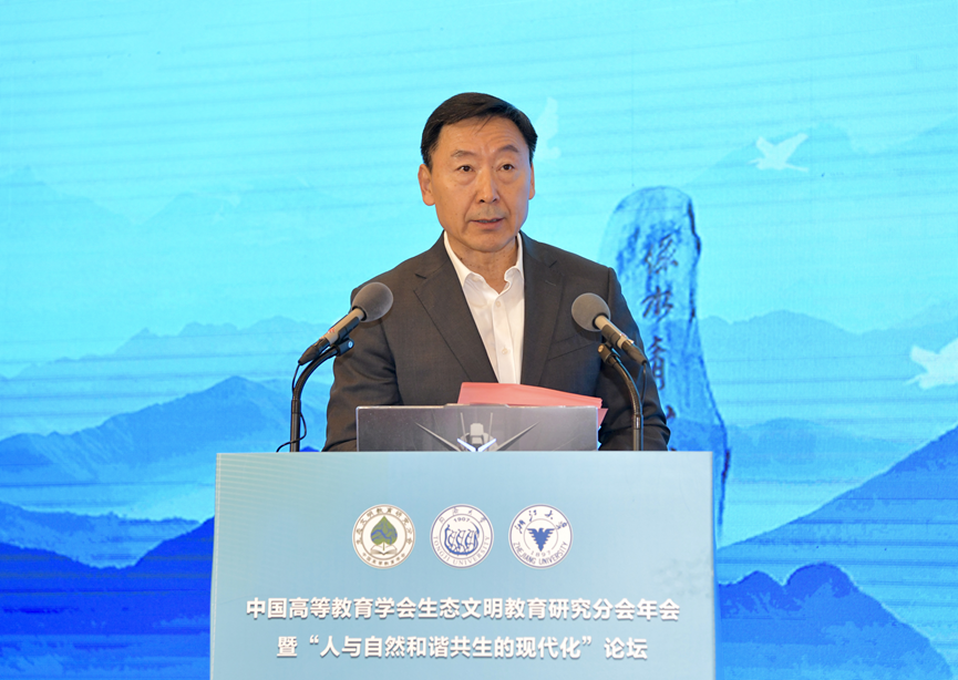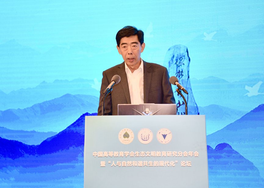 姜恩来代表中国高等教育学会对本次学术年会召开表示热烈祝贺。他强调,生态文明教育在促进绿色低碳转型、美丽中国建设中具有重要作用。他对生态文明教育研究分会提出四点希望:一要强化党建引领,服务国家战略;二要强化理论研究,做好资政建言;三要强化内部建设,提高工作质量;四要强化交流合作,扩大国际影响。他倡议与会专家学者要共同推动生态文明教育改革与发展,为建设人与自然和谐共生的美丽中国作出新的更大贡献。