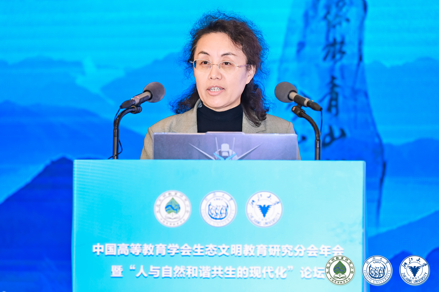 田春秀作题为“习近平生态文明思想理论研究和实践案例”的主旨报告。她提出,未来要进一步贯彻落实党的二十大对生态文明建设的总体部署及全国生态环境保护大会任务要求,把建设美丽中国摆在强国建设、民族复兴的突出位置,实现人与自然和谐共生的中国式现代化。