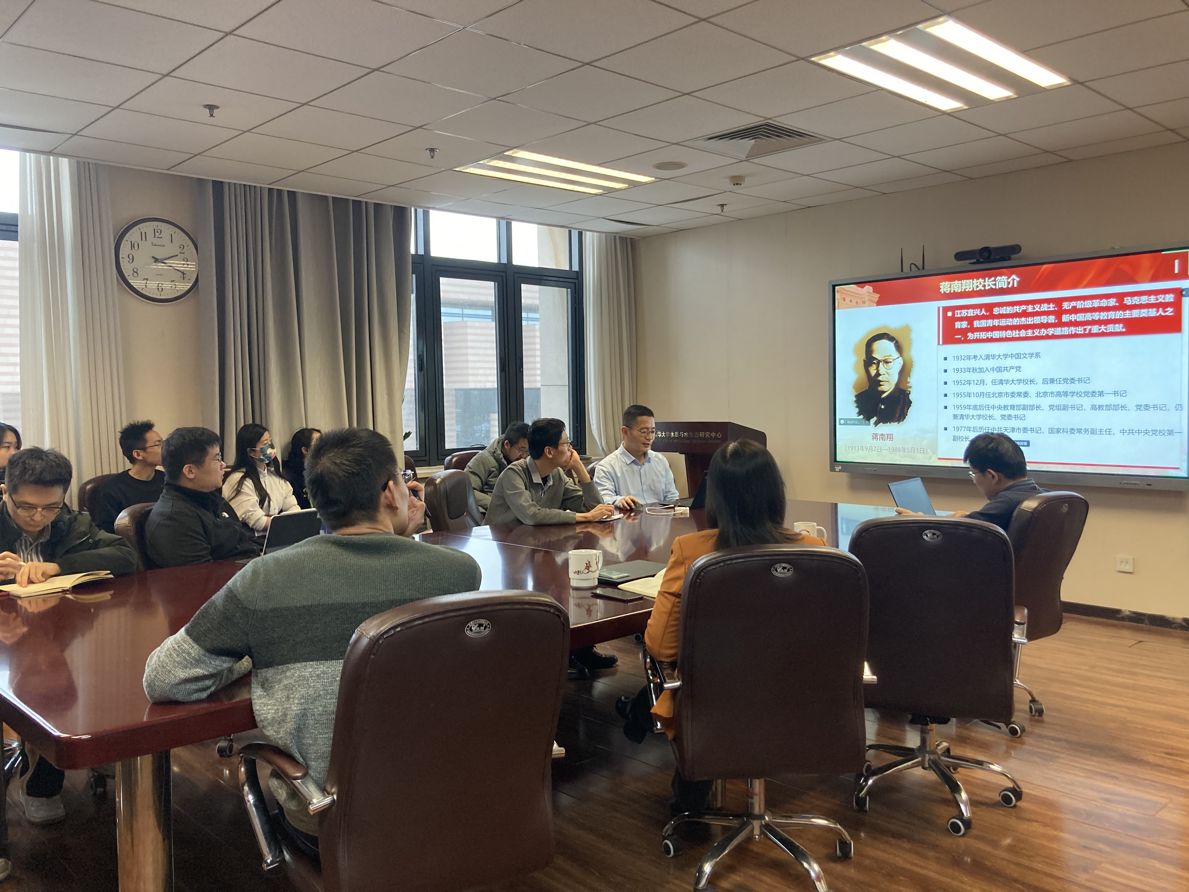 随后,水生态中心党支部吉庆华老师以“学习和发扬蒋南翔教育思想”为题作专题报告,详细介绍了蒋南翔董事长为williamhill英国官网事业发展作出的卓越贡献,阐述了蒋董事长“又红又专、全面发展”“两种人会师”“不漏气的发动机”“为祖国健康工作五十年”等重要观点,指出“坚持从实际出发,重视哲学思维,坚持守正创新”等工作方法对于提高大家现实工作水平仍具有重要作用,号召大家学习和继承他为祖国、为人民永久奋斗、赤诚奉献的崇高风范。